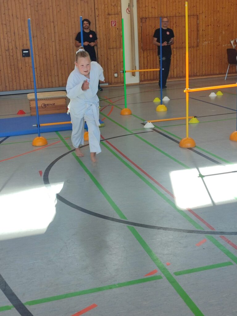 Bewegungsformen ausführen, um schließlich durch Slalomstangen durchs Ziel zu sprinten.